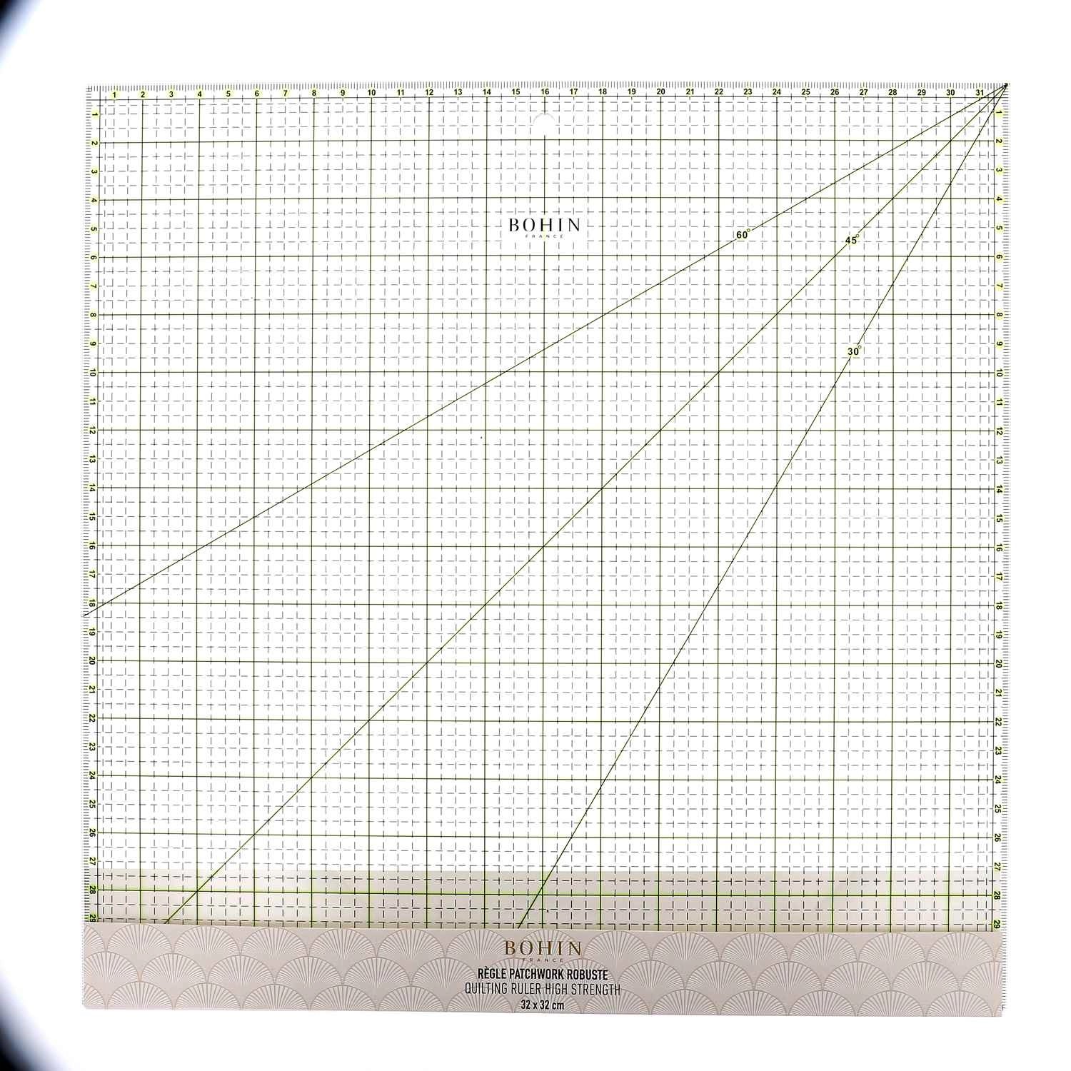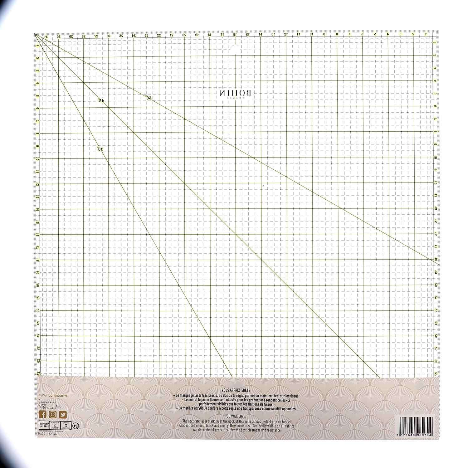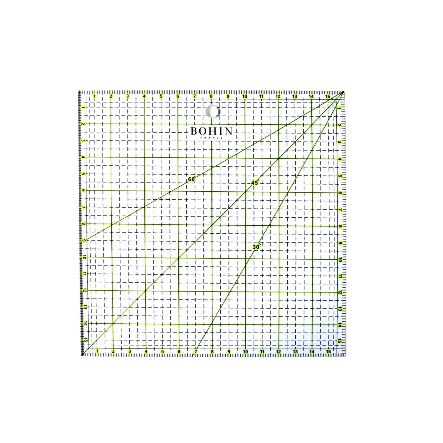 Règle patchwork carrée Robuste, cette règle patchwork offre une lecture parfaite des graduations. Vous apprécierez le marquage laser très précis au dos de la règle de patchwork qui permet un maintien idéal sur les tissus. Le noir et le jaune fluorescent utilisés pour les graduations rendent celles-ci parfaitement visibles sur toutes les finitions de tissus . La matière acrylique confère à cette règle de patchwork une transparence et une solidité optimales. |