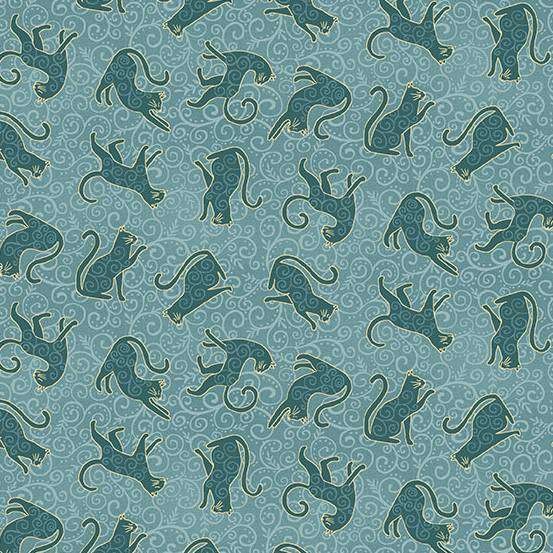 Tissu Coton Makower UK - Collection Charmed - Whiskers Teal